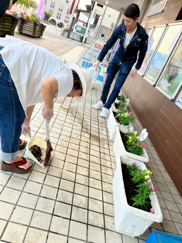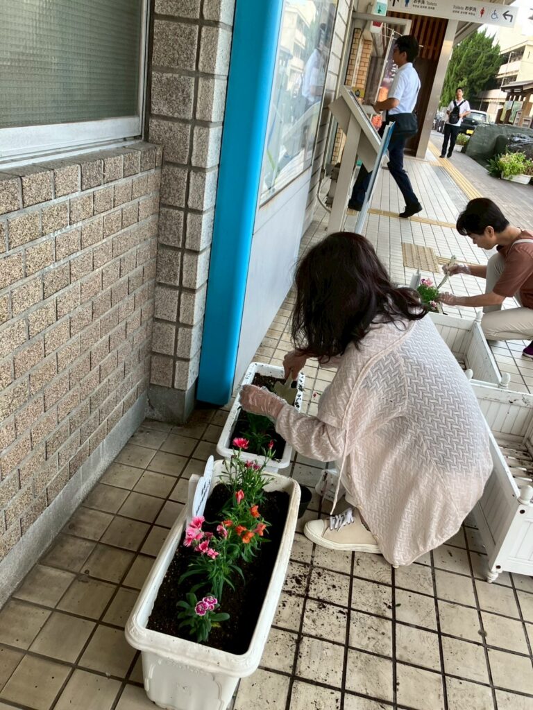 年4回の定期活動として、季節の花を植え、駅前を明るく気持ちの良い空間に整えています✨