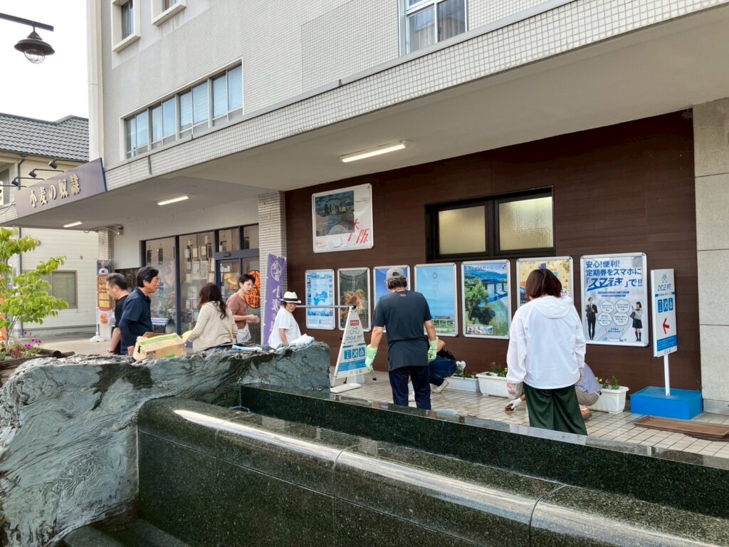 朝の短い時間ですが、駅を利用する皆さんはもちろん、伊予西条の玄関口としてみんなが気持ち良くなる駅前を目指しています。