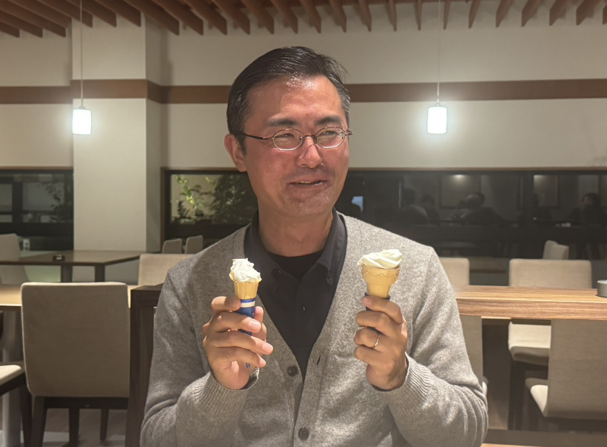 ↓たまたま誕生日の今井専任幹事、ソフトクリーム×2でお祝い☆彡