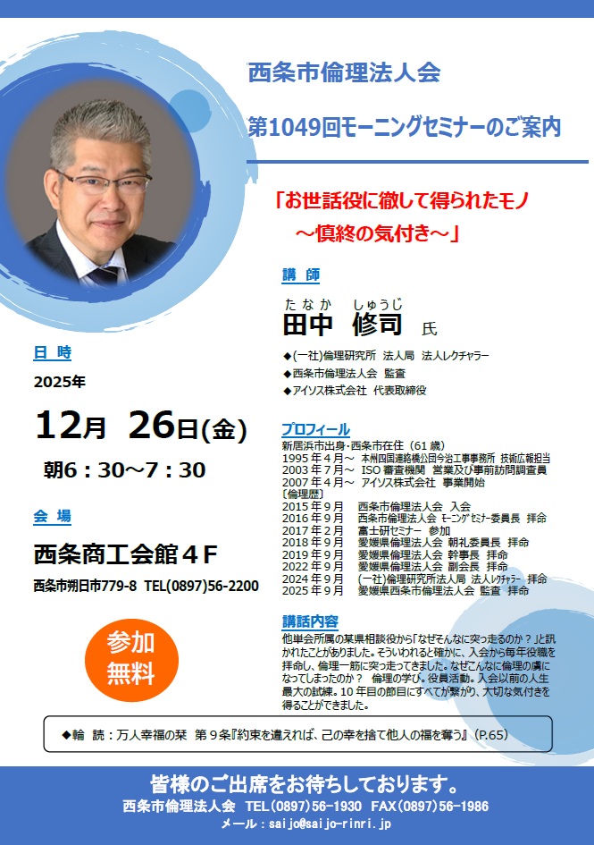 一人ではなく、「みんなで考え、みんなで動く」その覚悟と行動力に、多くの参加者が心を動かされた講話でした。