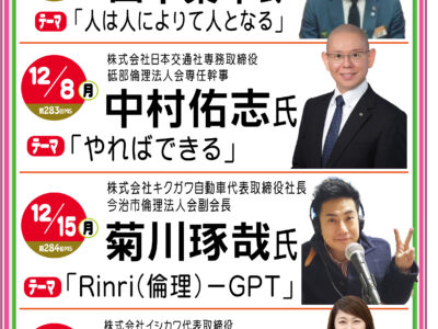 四国中央市宇摩倫理法人会12月モーニングセミナーのご案内 皆さまのご参加を心よりお待ちしております。
