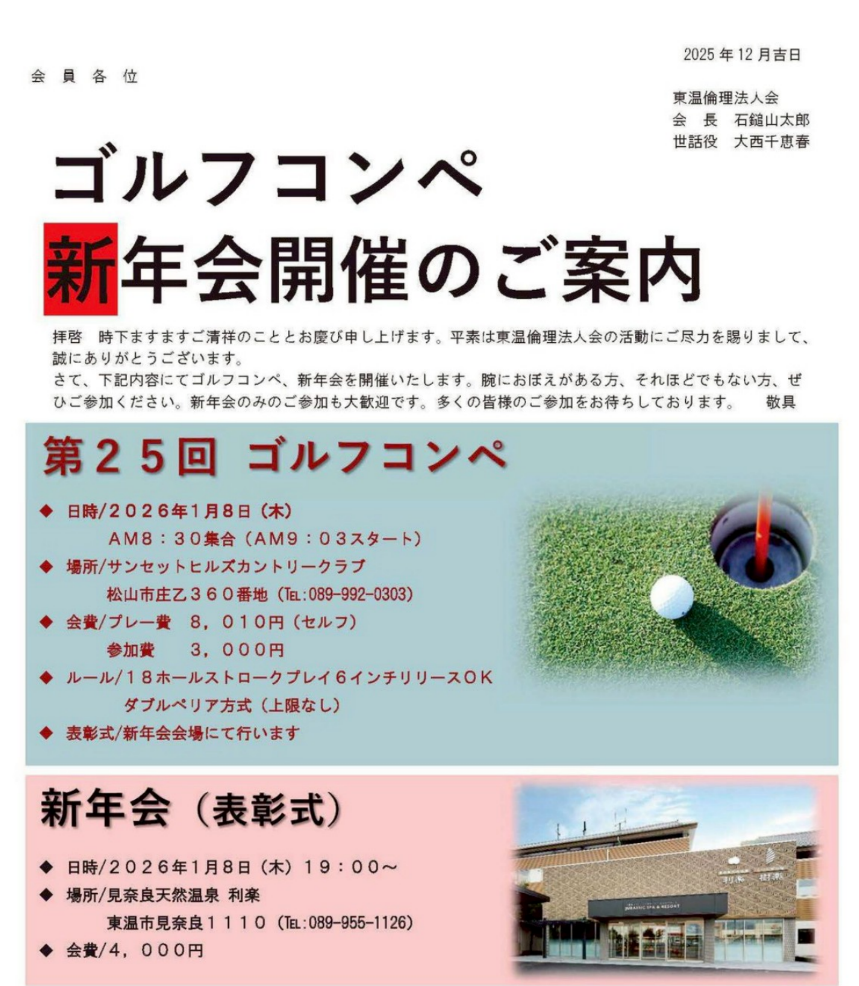 ゴルフ表彰式&新年会を開催致しました♪ | 愛媛県倫理法人会👈新年会(表彰式)の様子はこちらをクリック♪