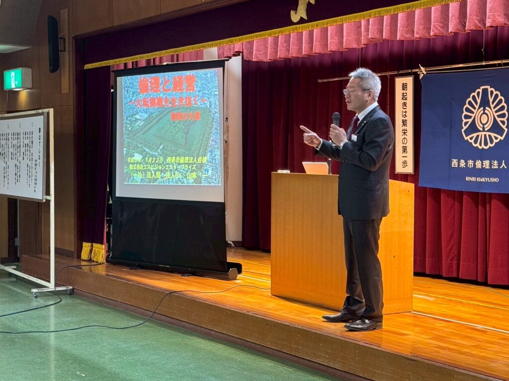 (一社)倫理研究所 法人局 法人スーパーバイザーであり、大阪府倫理法人会 相談役、株式会社エスビジョンエンタープライズ代表取締役を務められている山本一さん を講師にお迎えしました。