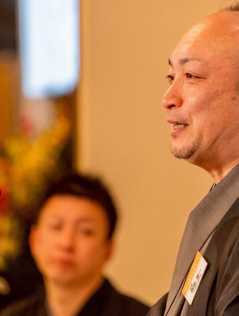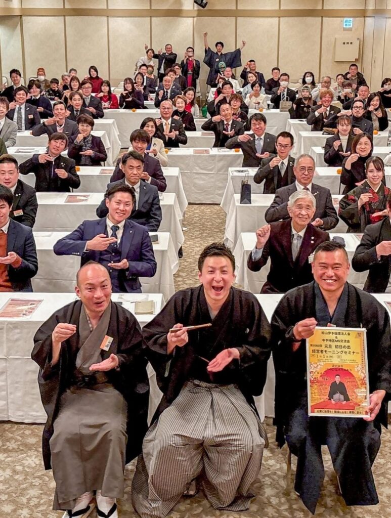 記念すべき新春の講師には、落語家の桂竹紋氏をお迎えしました。 テーマは「一年の計は元旦にあり」。 講話を“落語”という粋な形で届けていただく特別な時間となりました。また、会員スピーチは愛媛県会長に務めていただき、格調高い新年のスタートを切ることができました。