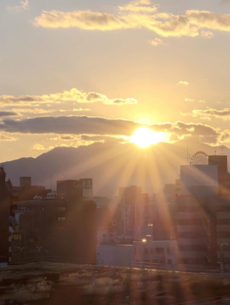 当日は曇り予報が出ておりましたが、集まった100名超の参加者の想いが通じたのか、屋上からは美しい初日の出を拝むことができました。