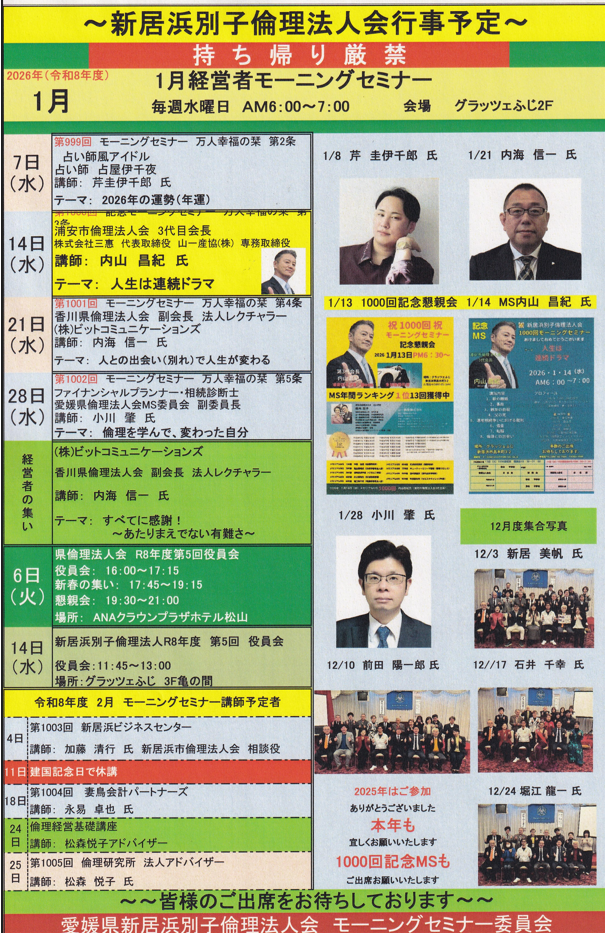そして会員の皆さま一人ひとりの成長と、私自身の更なる学びと実践を重ね、共に歩んでまいります。今後ともご指導ご鞭撻を賜りますようお願い申し上げます。